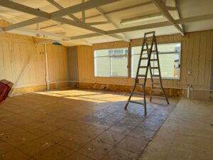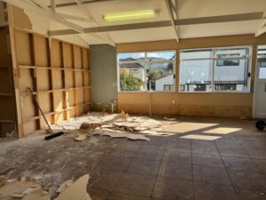 Demolition of existing walls, roof, wall coverings, floor coverings, ceilings linings, windows, doors , fixtures, furniture, electrical, and lighting