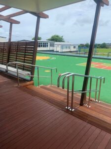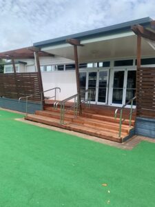 Install a new deck including steps that lead from the library out to the astro turf area.