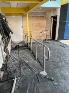 • Remove existing built-in urinal in the boys toilets and replace with new automatic flushing unit.