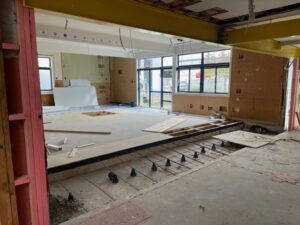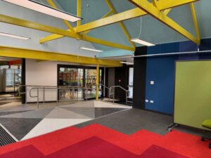 • Remove carpet in the corridor outside room 27 by the student toilets and replace with new vinyl flooring.