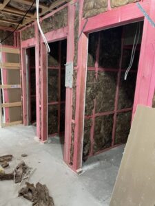 • Remove existing wall coverings and replace with new acoustic wall coverings.