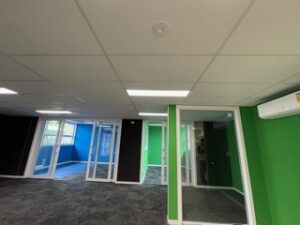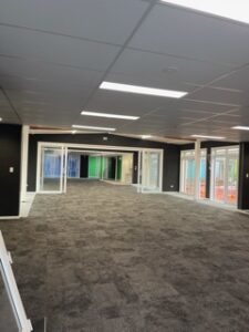 sliders, new carpet, new Autex lining and new suspended ceiling.